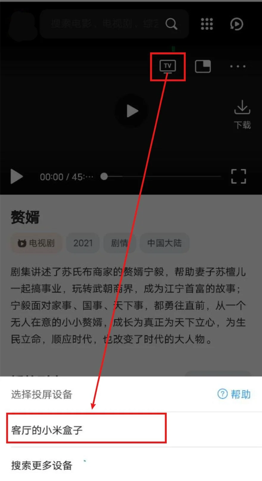 安卓夸克浏览器->打开茶杯狐Cupfox - 努力让找电影变得简单->开始播放->全屏->左下角投屏->等待搜寻到智能电视/电视盒子->选中,即可投屏。